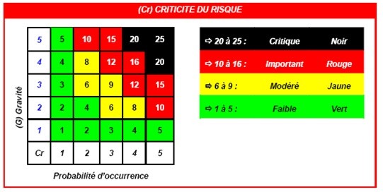 Celle-ci nous conduira vers un niveau de criticité du risque, déterminé par le produit de la gravité et de la probabilité d’occurrence.